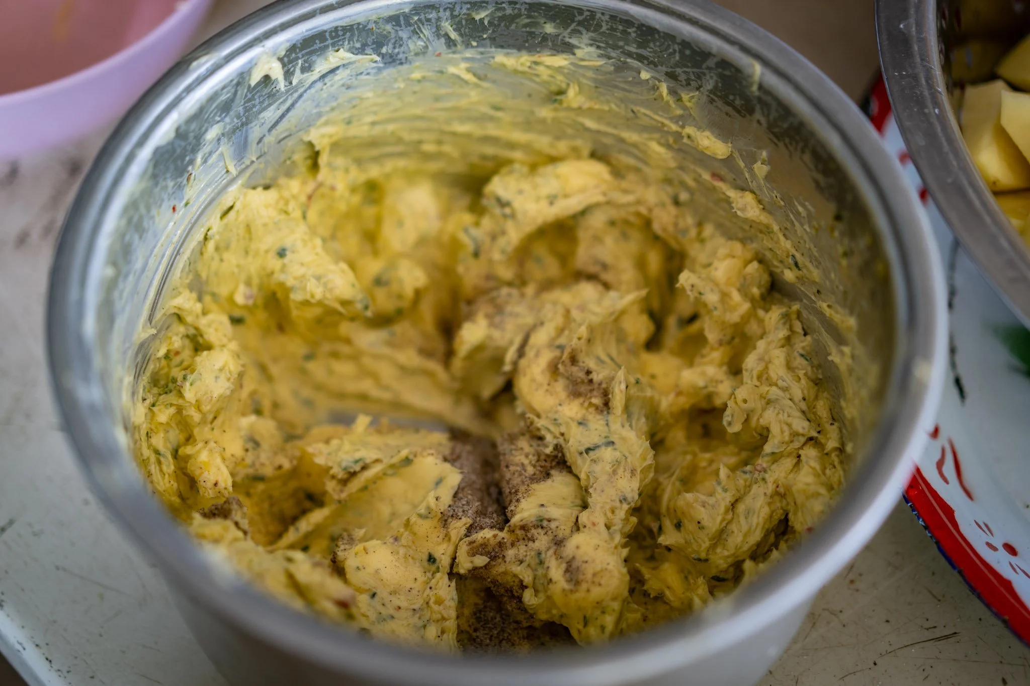 We zested and juiced lemons, crushed garlic, matchsticked ginger, sliced star fruit, and roasted chilies. I made a compound butter, which found its way into all three of my dishes.