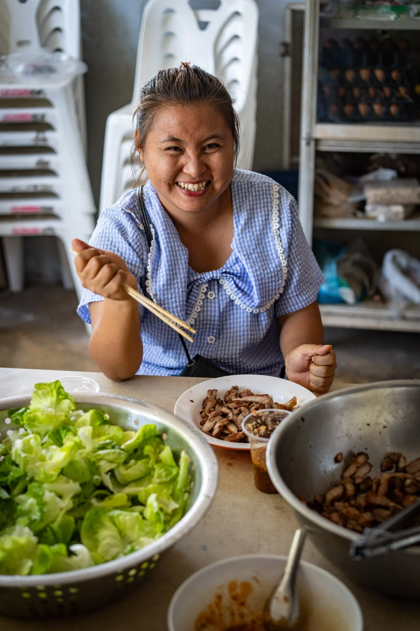 When I arrived at our Doi Saket 1 campus early this morning, I was feeling pretty good about the setup — especially relieved to have bought fresh, not frozen, beef. When our staff brought the food to one of the home’s large outdoor kitchens, however, I discovered that someone had — with helpful intent, I’m sure — stored all of the fresh meat… in the freezer.